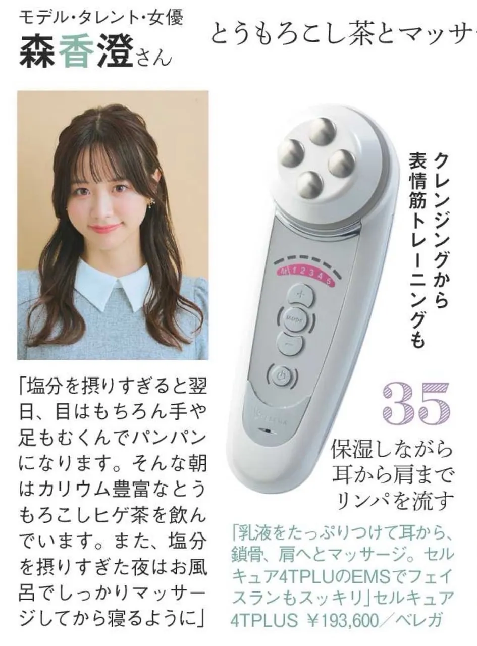 メディア掲載情報 セルキュア4Tplus 美人百花6月号にセルキュア4TPLUSが掲載されました 当サロンでも大人気の美顔器セルキュア4TPLUS**が紹介されました! 掲載された特集はこちら 「むくみレスなBODYづくり45連発!!」 「モデル&アイドル…